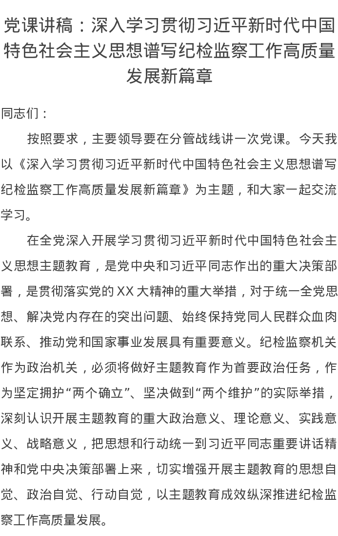 党课讲稿:深入学习贯彻习近平新时代中国特色社会主义思想谱写纪检监察工作高质量发展新篇章