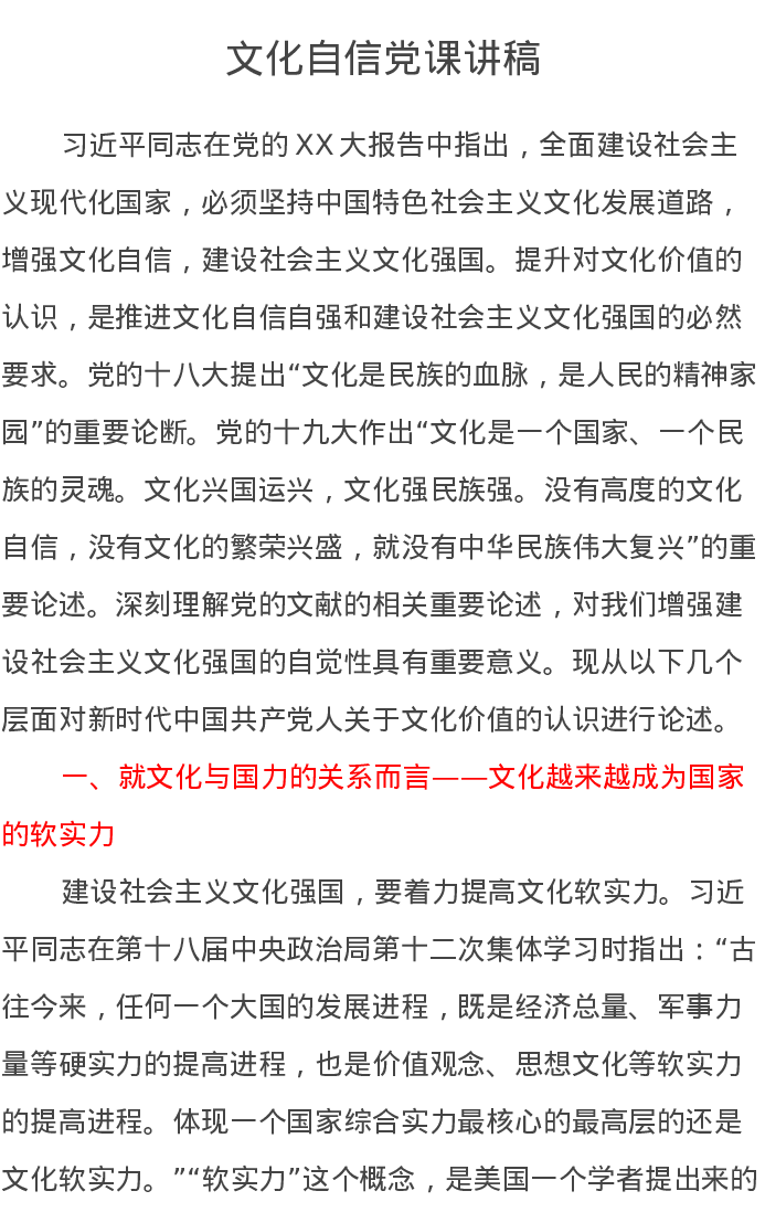 文化自信党课讲稿