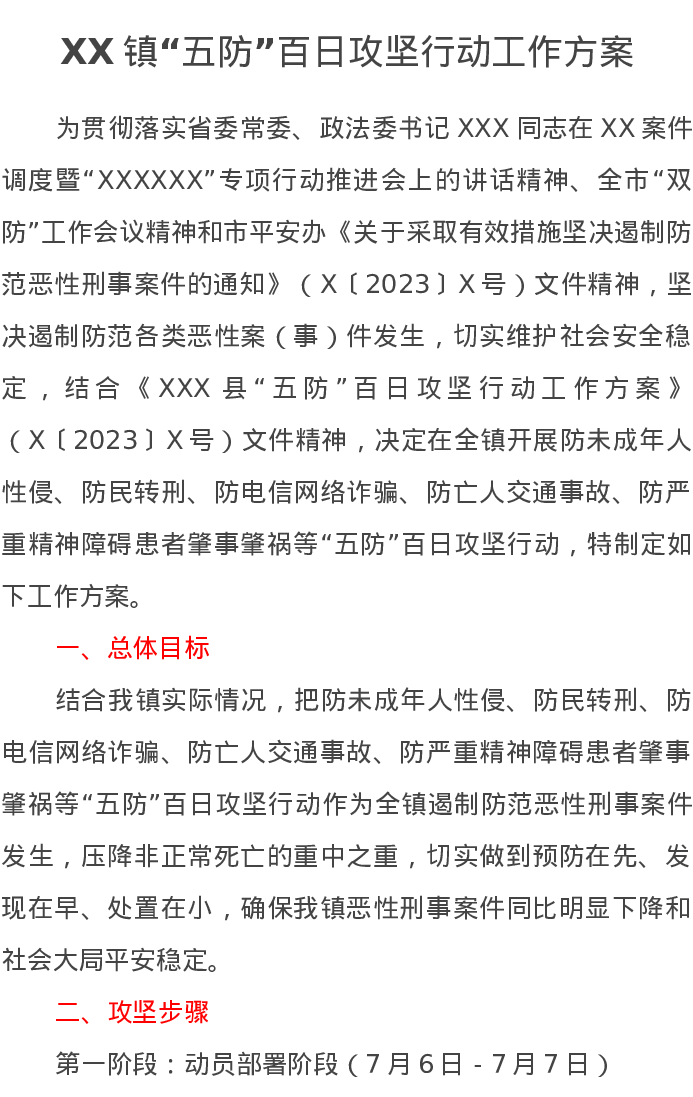 XX镇“五防”百日攻坚行动工作方案