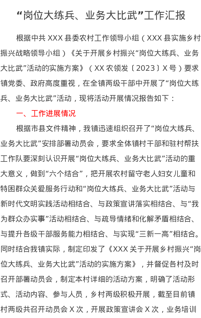 “岗位大练兵、业务大比武”工作汇报