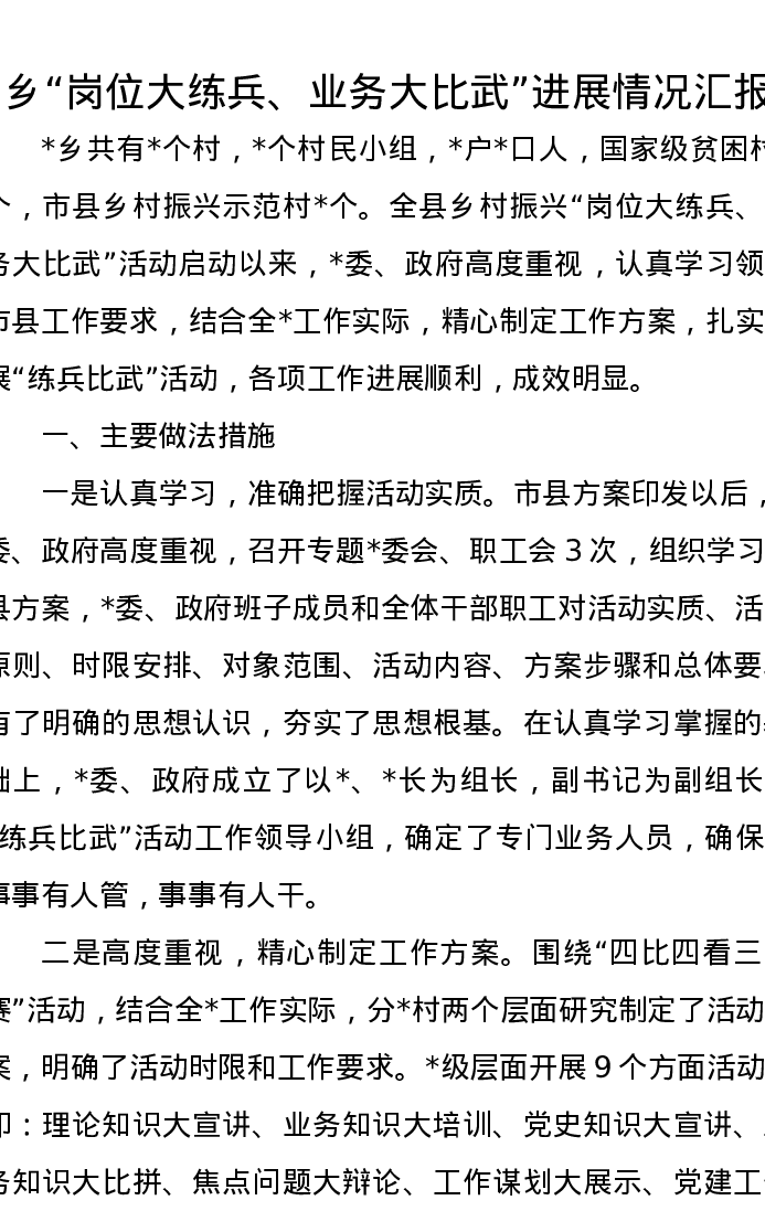 乡“岗位大练兵、业务大比武”进展情况汇报