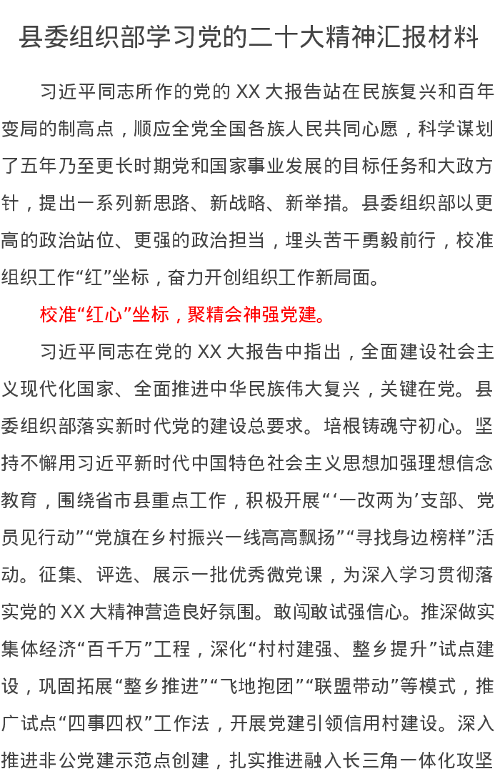 县委组织部学习党的二十大精神汇报材料