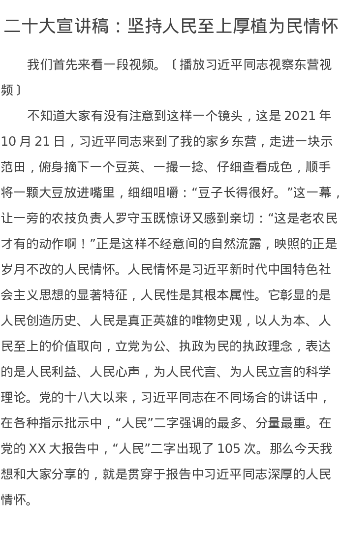 二十大宣讲稿:坚持人民至上厚植为民情怀