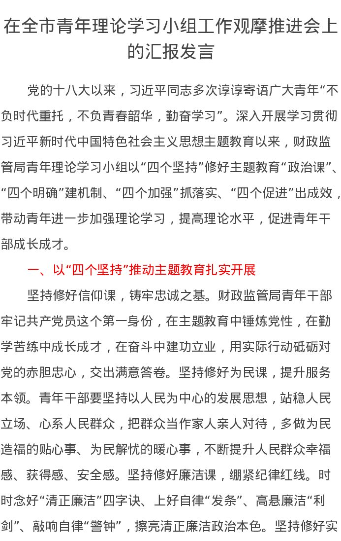 在全市青年理论学习小组工作观摩推进会上的汇报发言