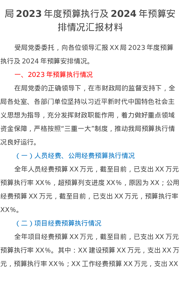 局2023年度预算执行及2024年预算安排情况汇报材料