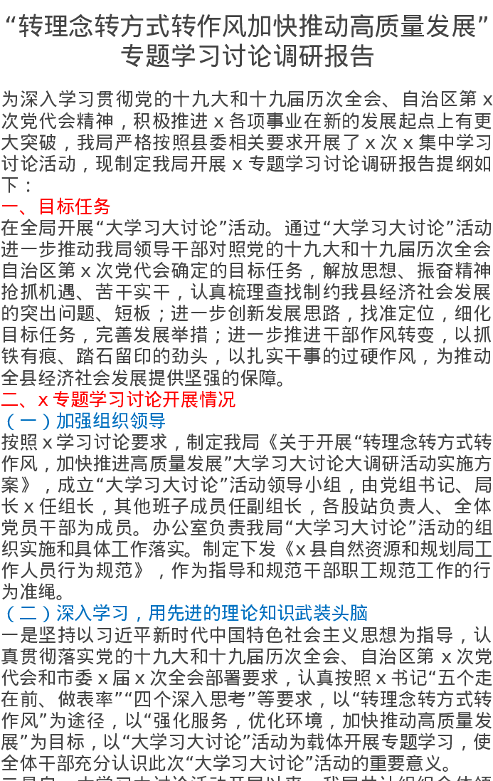 “转理念转方式转作风加快推动高质量发展”专题学习讨论调研报告