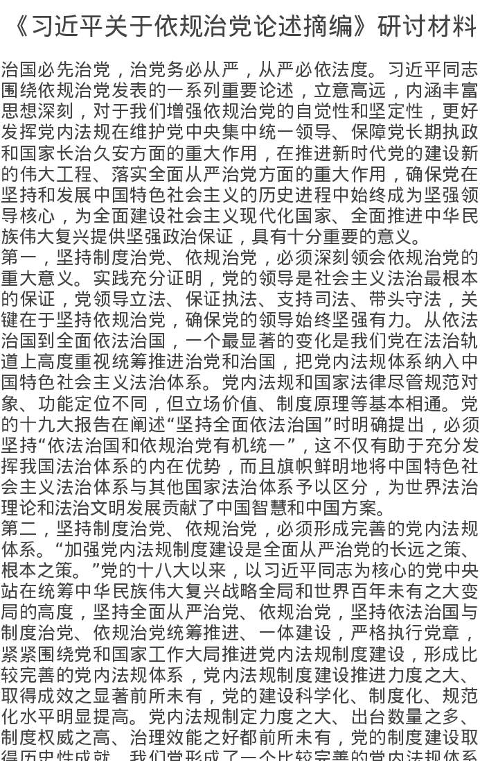 《关于依规治党论述摘编》研讨材料
