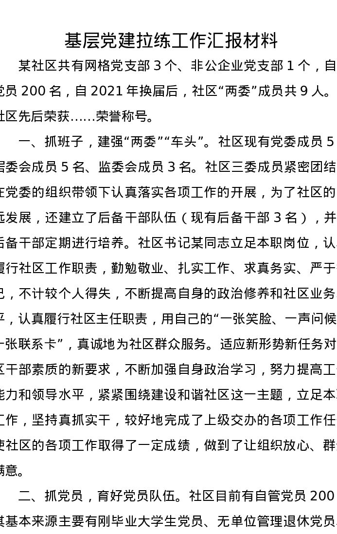 基层党建拉练工作汇报材料