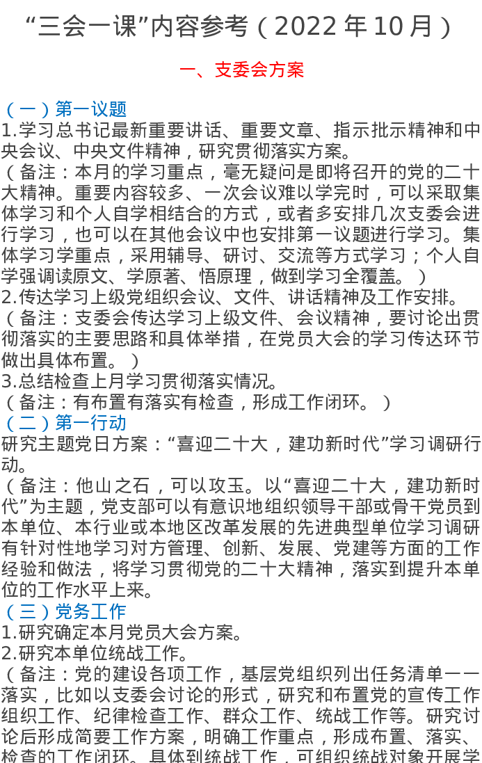 2022年10月“三会一课”内容参考