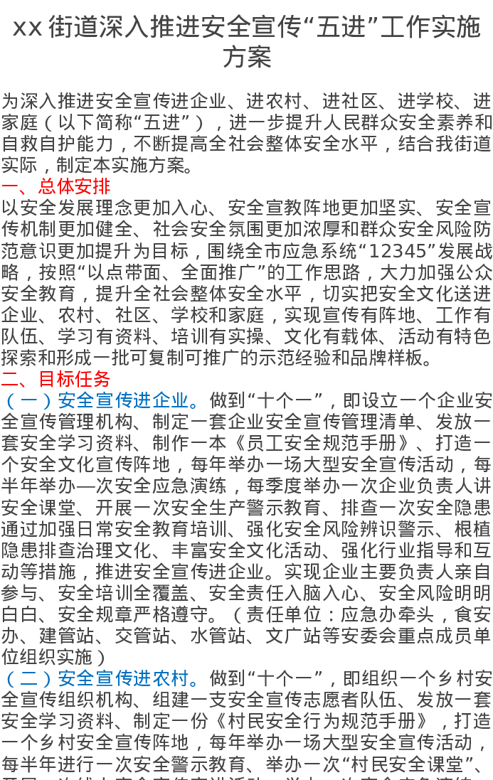 xx街道深入推进安全宣传“五进”工作实施方案