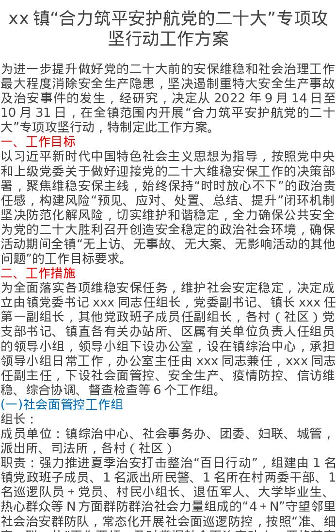 xx镇“合力筑平安护航党的二十大”专项攻坚行动工作方案