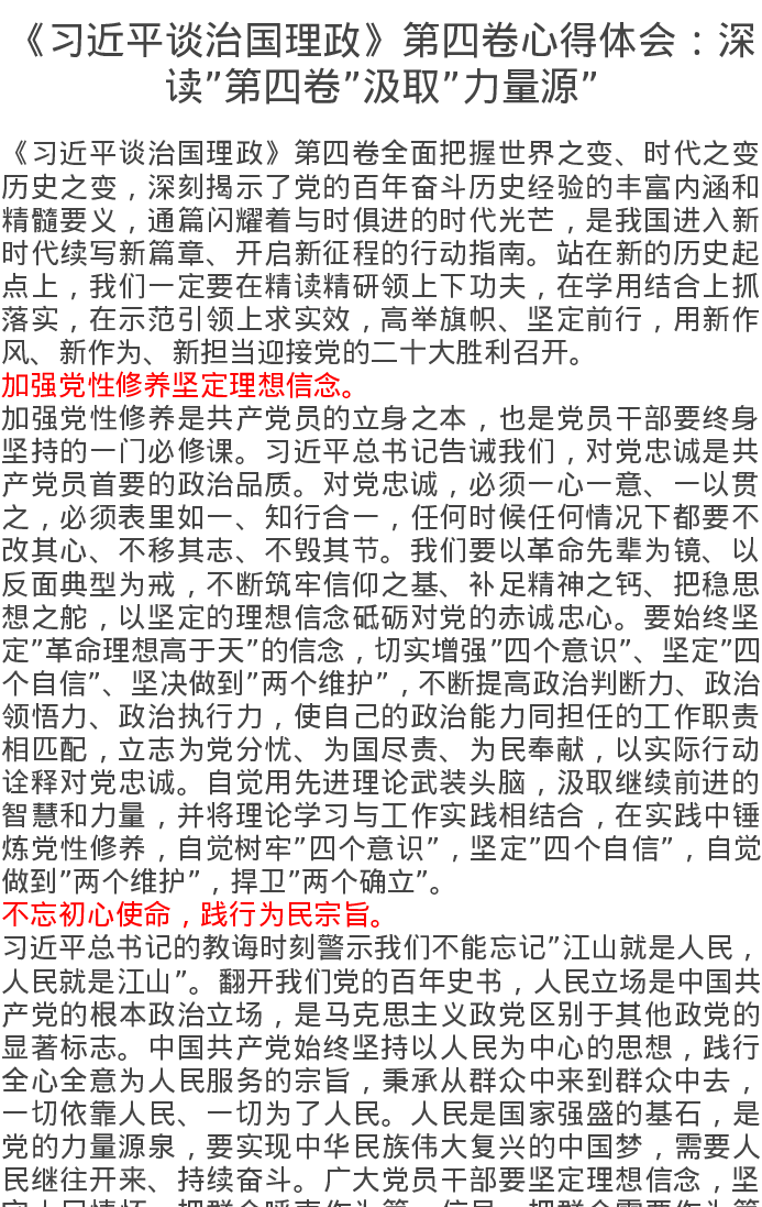 《谈治国理政》第四卷心得体会:深读”第四卷”汲取”力量源”
