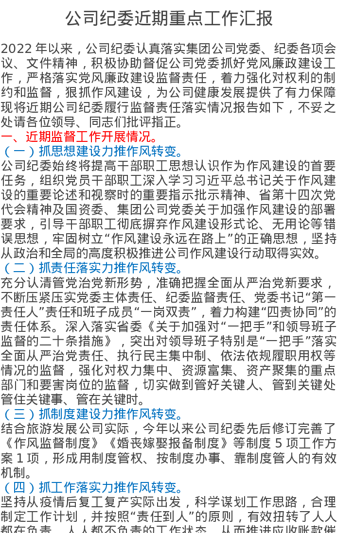 公司纪委近期重点工作汇报