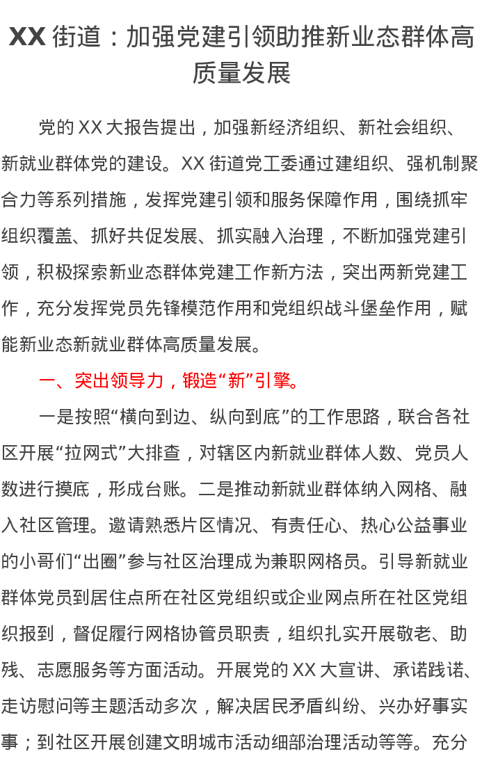 XX街道汇报:加强党建引领助推新业态群体高质量发展