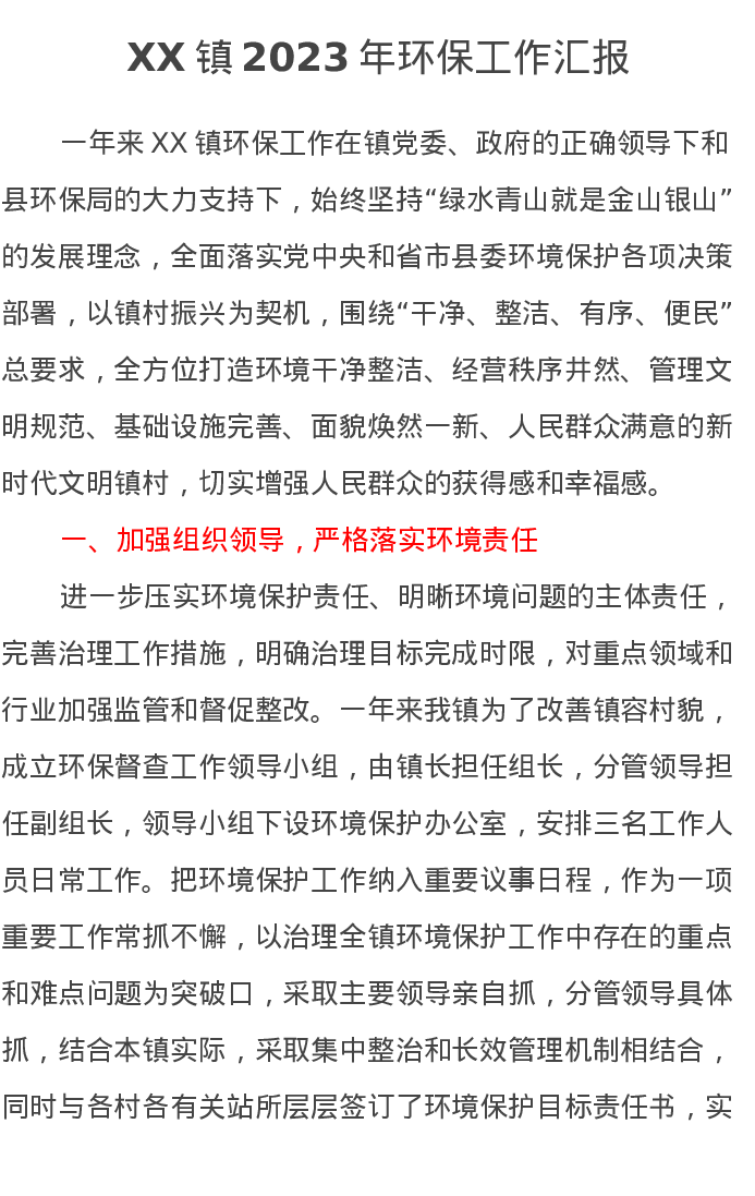 XX镇2023年环保工作汇报