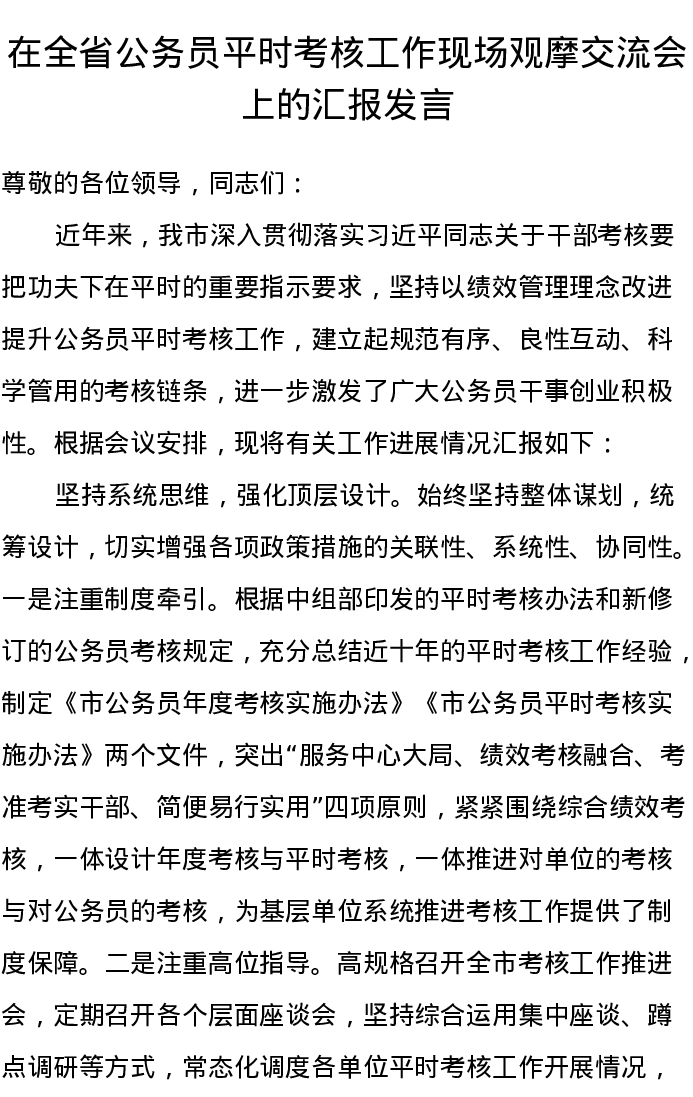 在全省公务员平时考核工作现场观摩交流会上的汇报发言