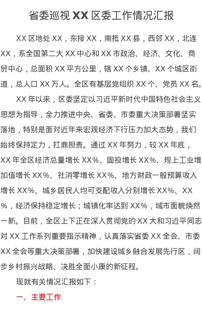 省委巡视XX区委工作情况汇报
