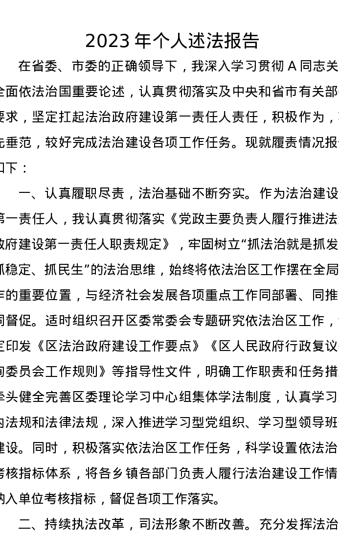 2023年个人述法报告