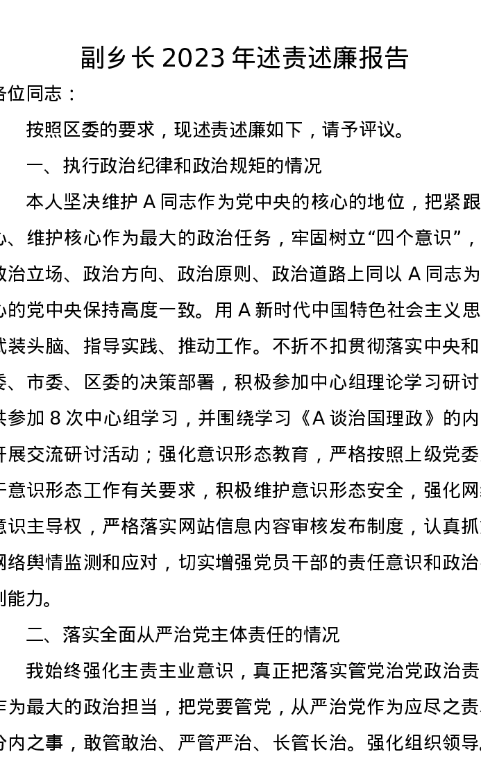 副乡长2023年述责述廉报告