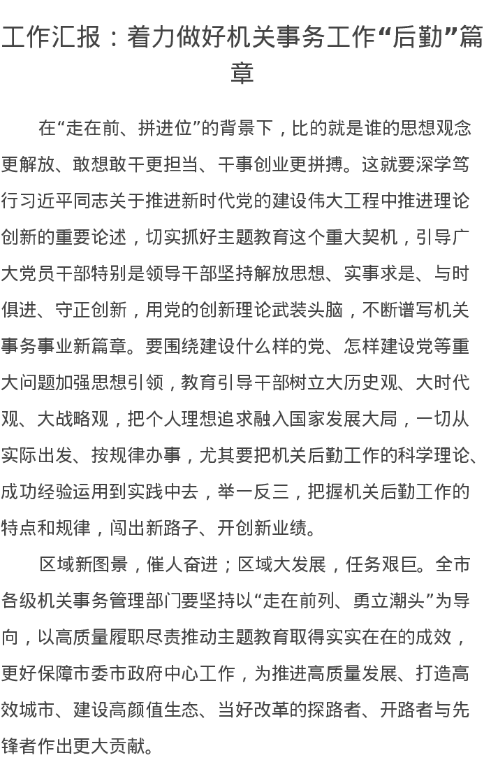 工作汇报:着力做好机关事务工作“后勤”篇章