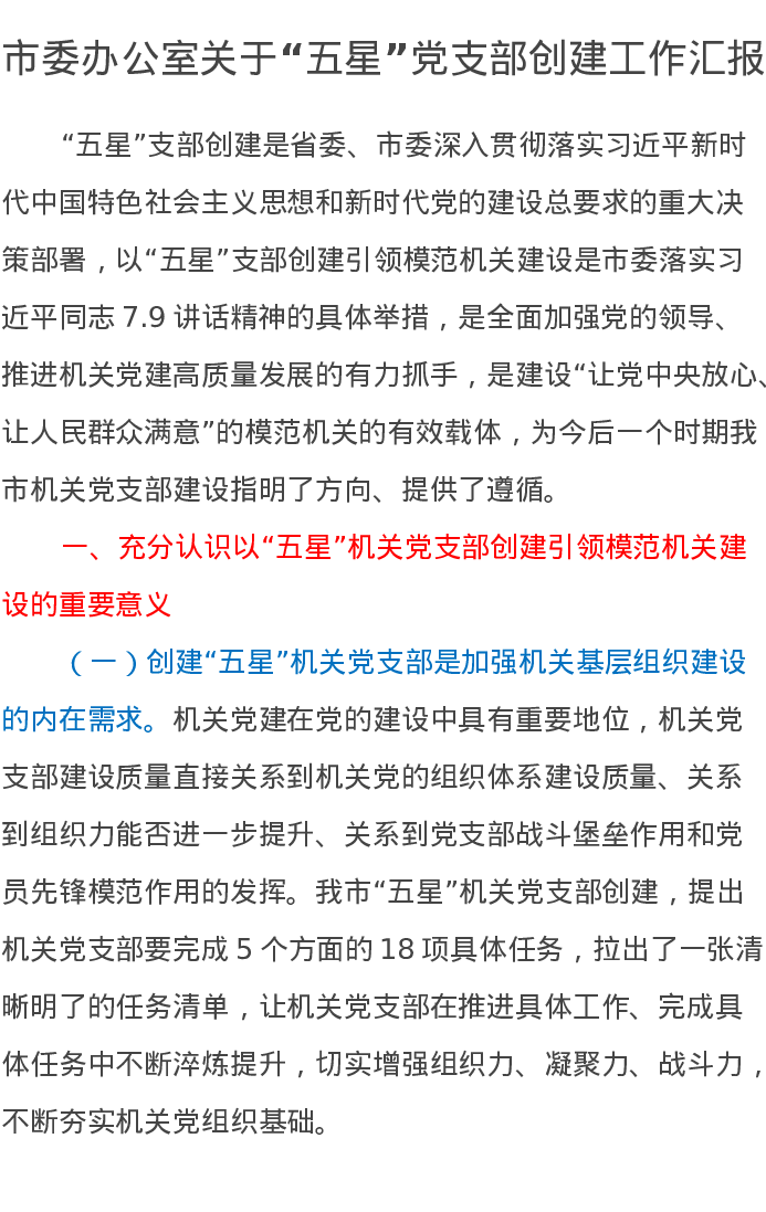 市委办公室关于“五星”党支部创建工作汇报