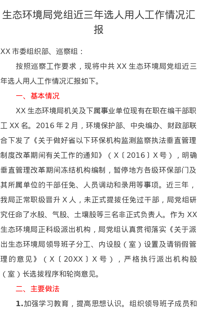 生态环境局党组近三年选人用人工作情况汇报