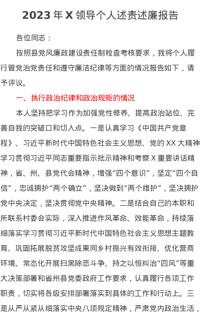 2023年X领导个人述责述廉报告1