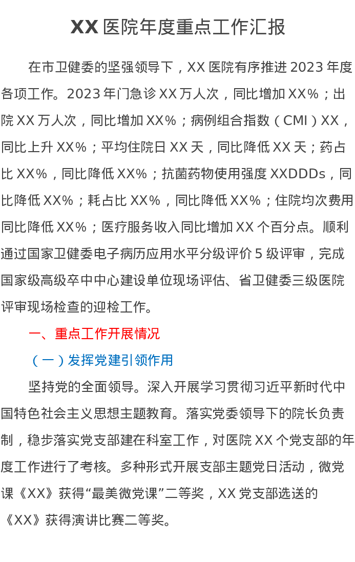 XX医院年度重点工作汇报