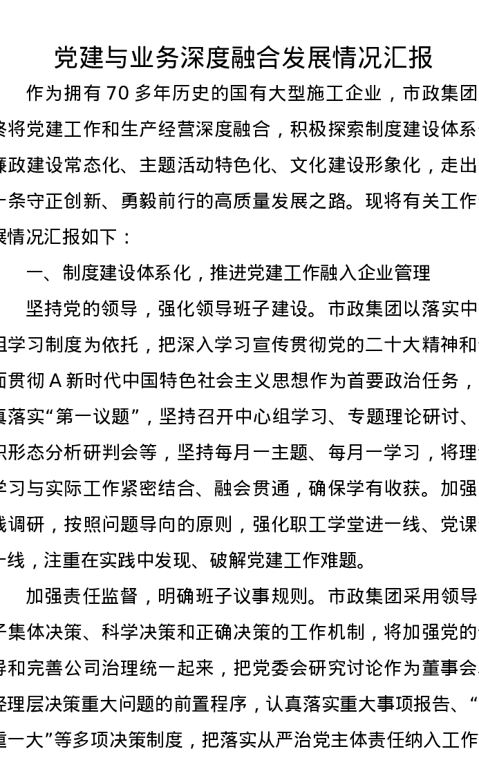 党建与业务深度融合发展情况汇报