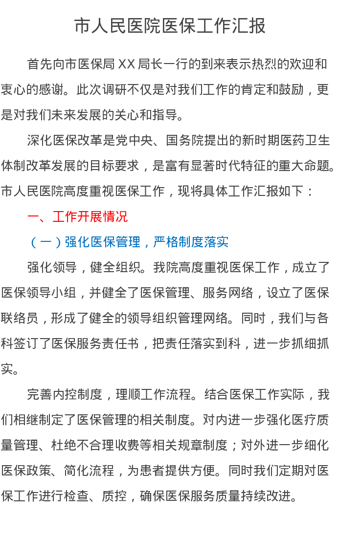 市人民医院医保工作汇报