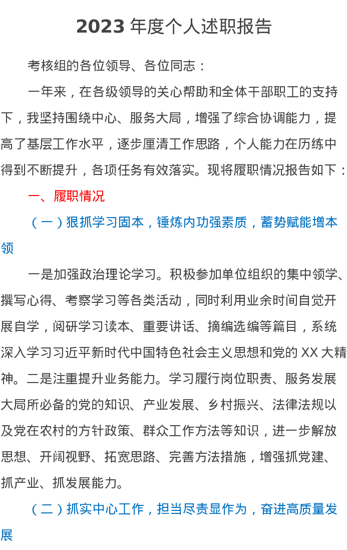 2023年度党员干部个人述职报告2