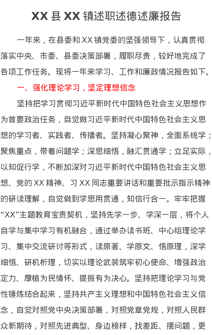 XX县XX镇党委书记2023年述职述德述廉报告