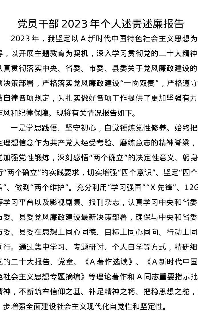 党员干部2023年个人述责述廉报告