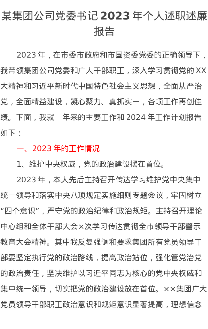 某集团公司党委书记2023年个人述职述廉报告