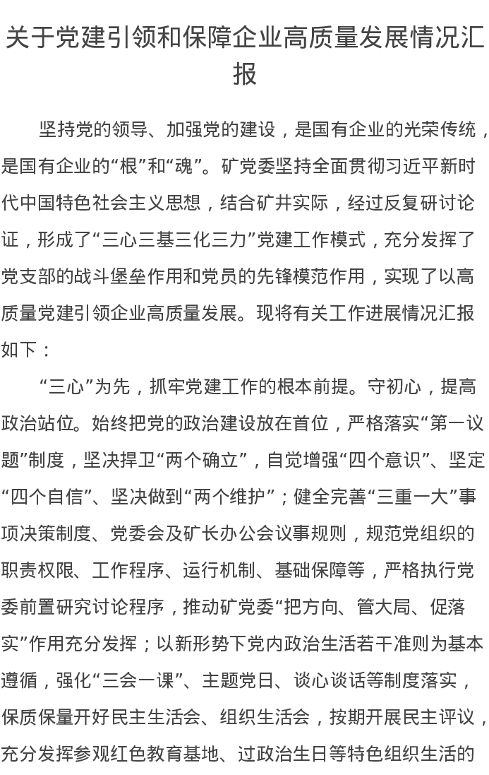 关于党建引领和保障企业高质量发展情况汇报