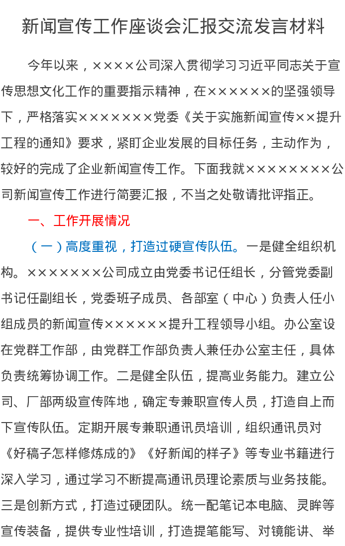 新闻宣传工作座谈会汇报交流发言材料2