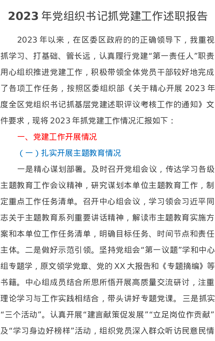 2023年党组织书记抓党建工作述职报告