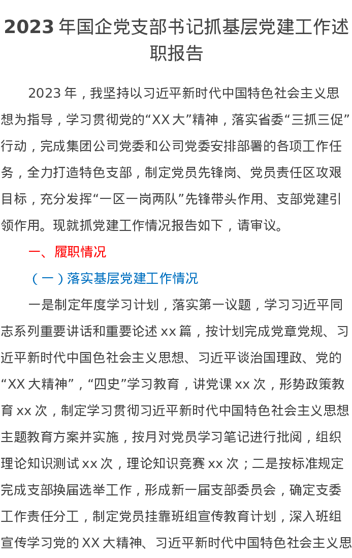 2023年国企党支部书记抓基层党建工作述职报告