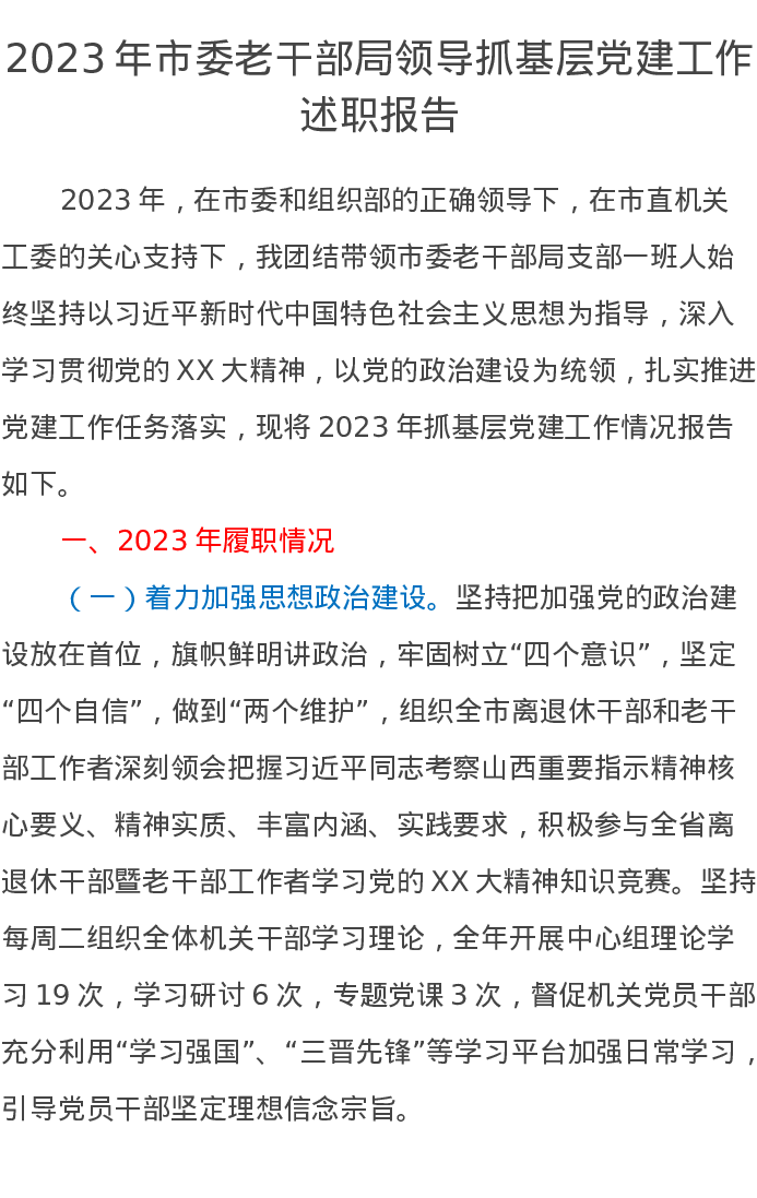 2023年市委老干部局领导抓基层党建工作述职报告