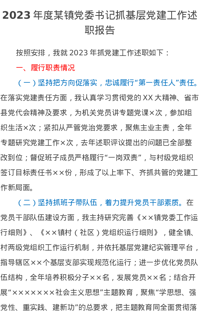 2023年度某镇党委书记抓基层党建工作述职报告