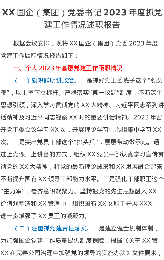 XX国企(集团)党委书记2023年度抓党建工作情况述职报告