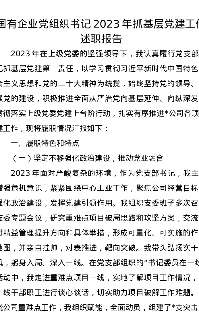 国有企业党组织书记2023年抓基层党建工作述职报告
