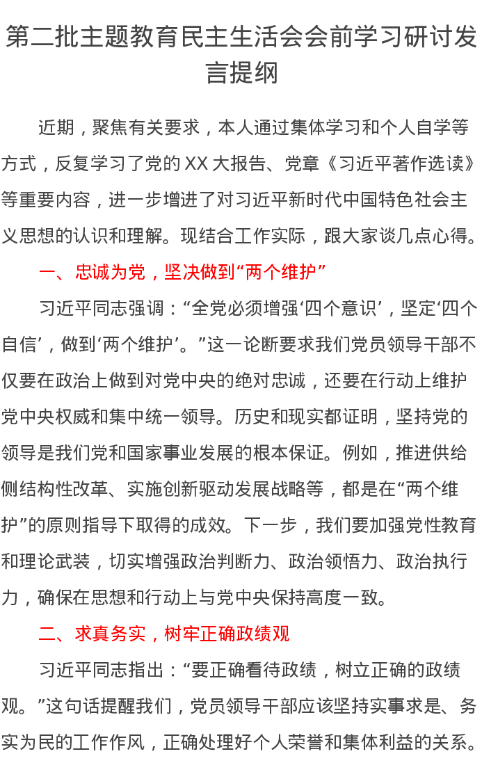 第二批主题教育民主生活会会前学习研讨发言提纲12(特色社会主义思想)