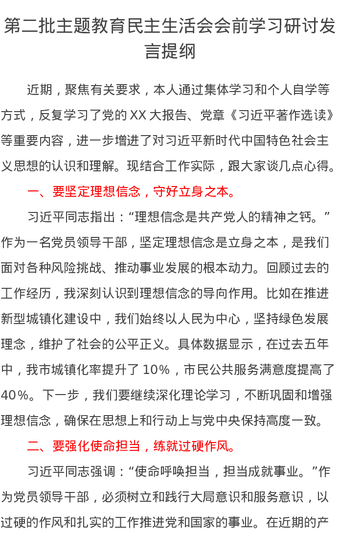 第二批主题教育民主生活会会前学习研讨发言提纲16(特色社会主义思想)