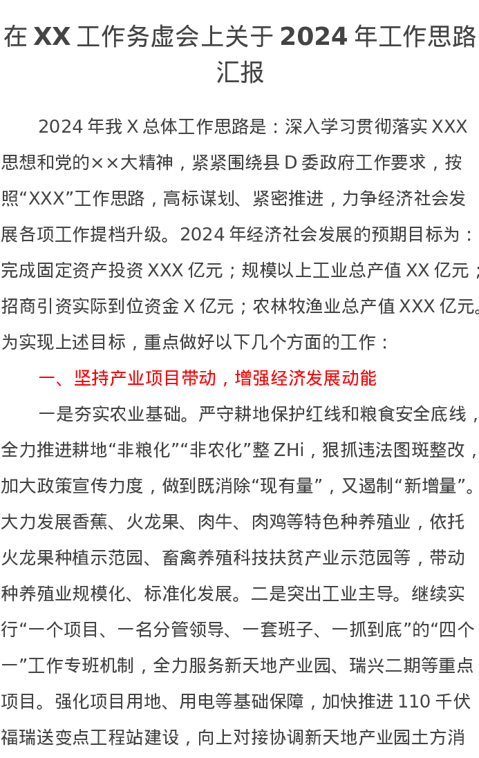 在XX工作务虚会上关于2024年工作思路汇报