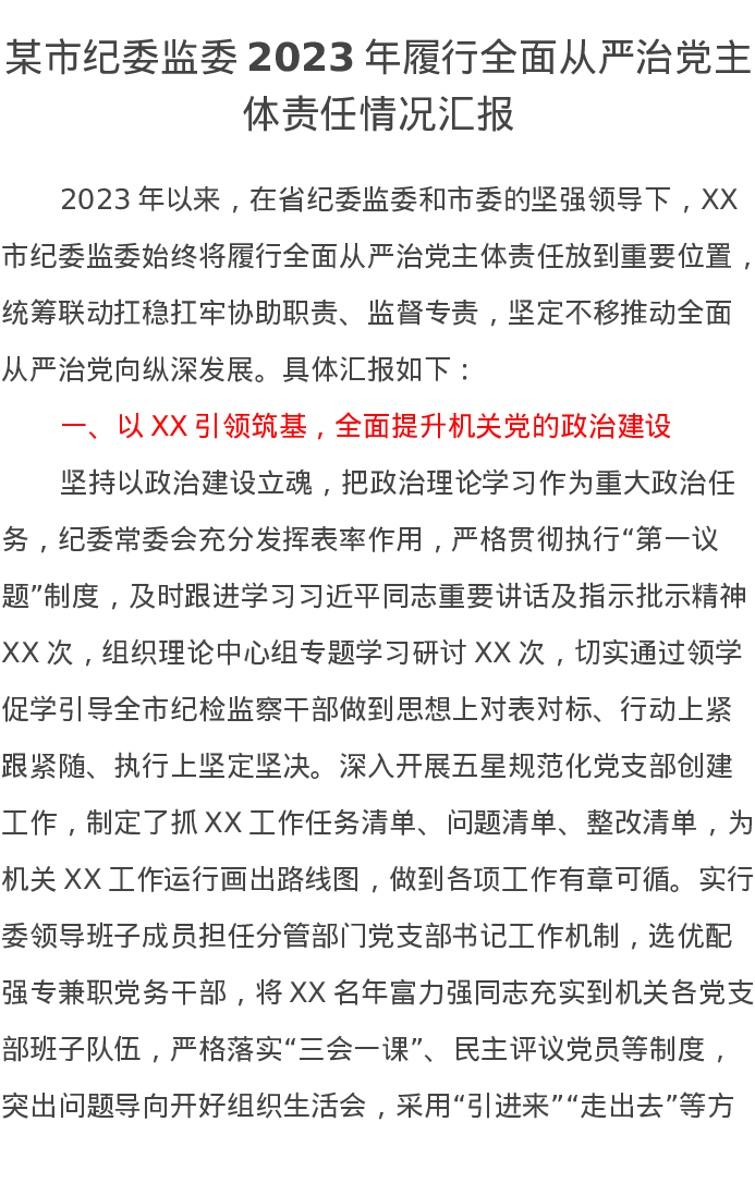 某市纪委监委2023年履行全面从严治党主体责任情况汇报