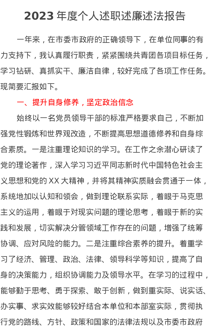 2023年度个人述职述廉述法报告