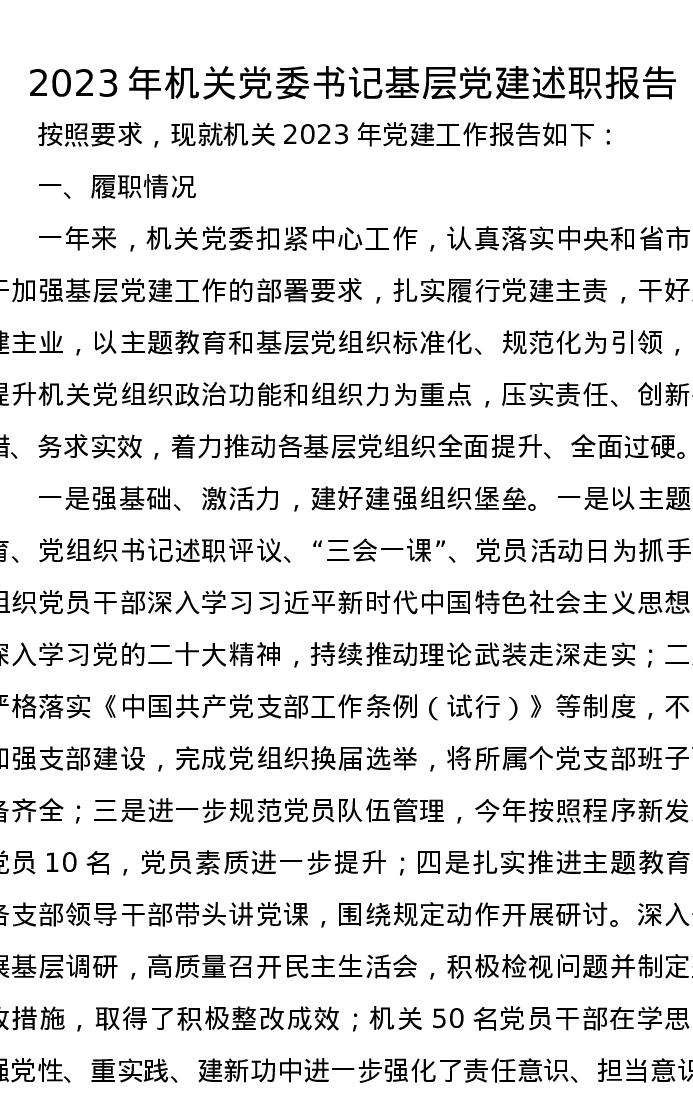 2023年机关党委书记基层党建述职报告