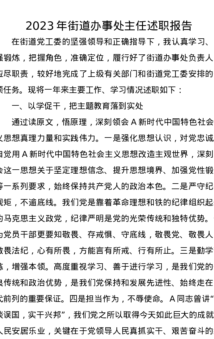 2023年街道办事处主任述职报告