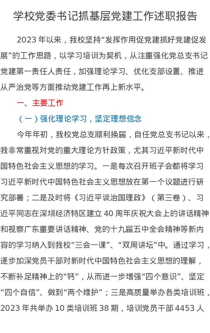 学校党委书记抓基层党建工作述职报告